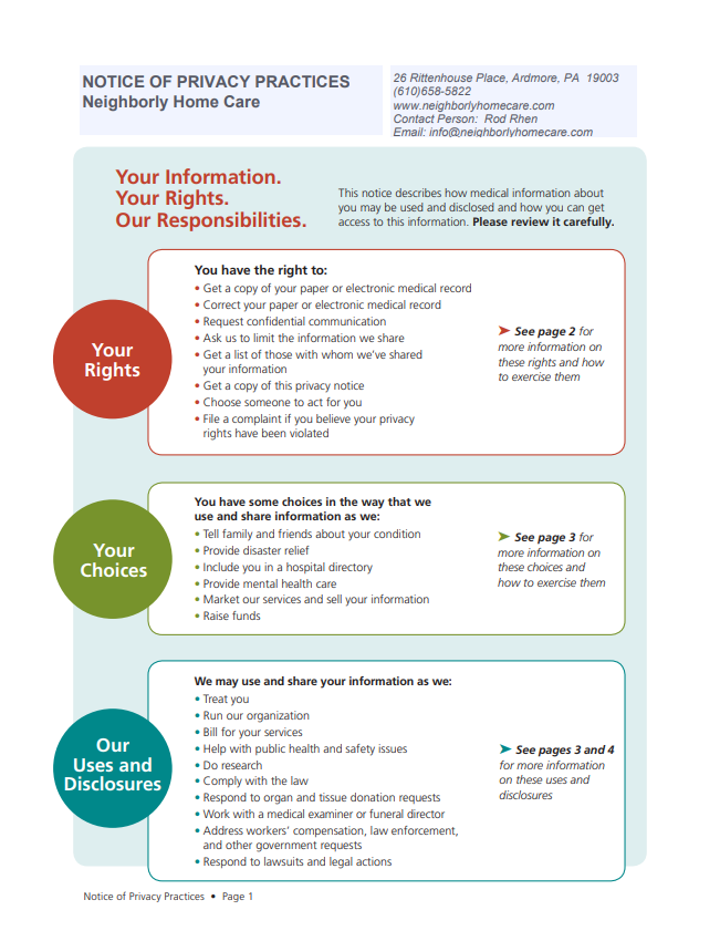 View Neighborly Home Care HIPPA Privacy Practices PDF